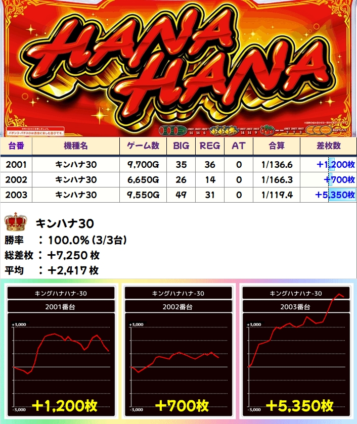 【全台系濃厚】キンハナ30(3/3台+)→平均+2,417枚