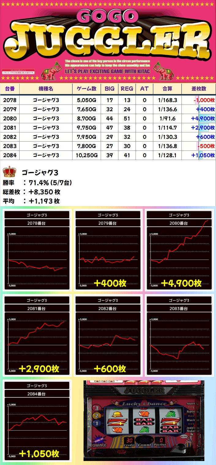 【1/2系濃厚】ゴージャグ3(5/7台+)→平均+1,193枚