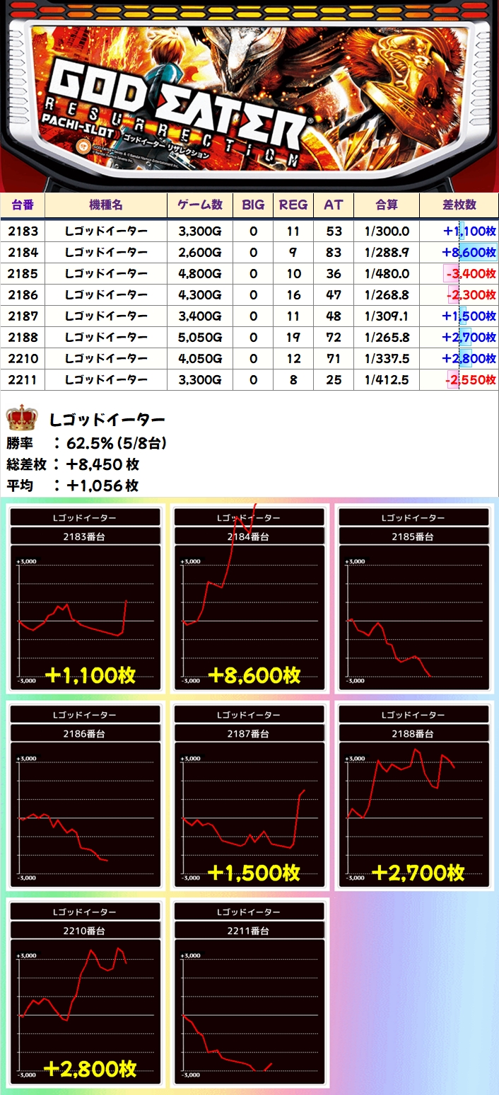 【1/2系濃厚】Lゴッドイーター(5/8台+)→平均+1,056枚