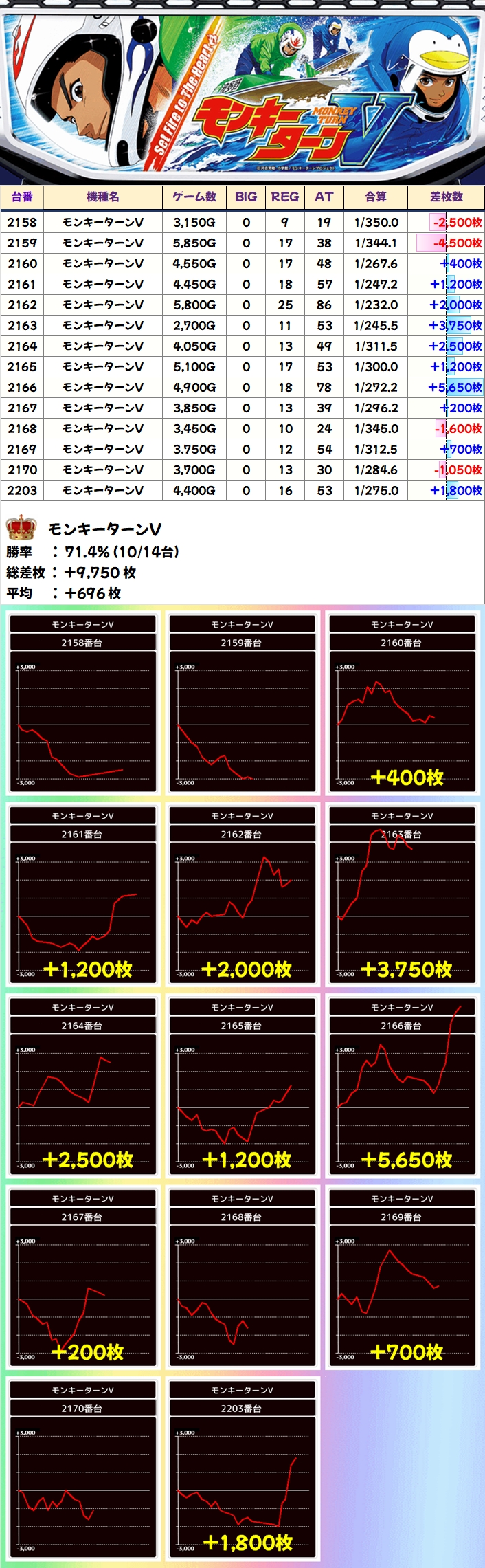 【1/2系濃厚】モンキーターンV(10/14台+)→平均+696枚