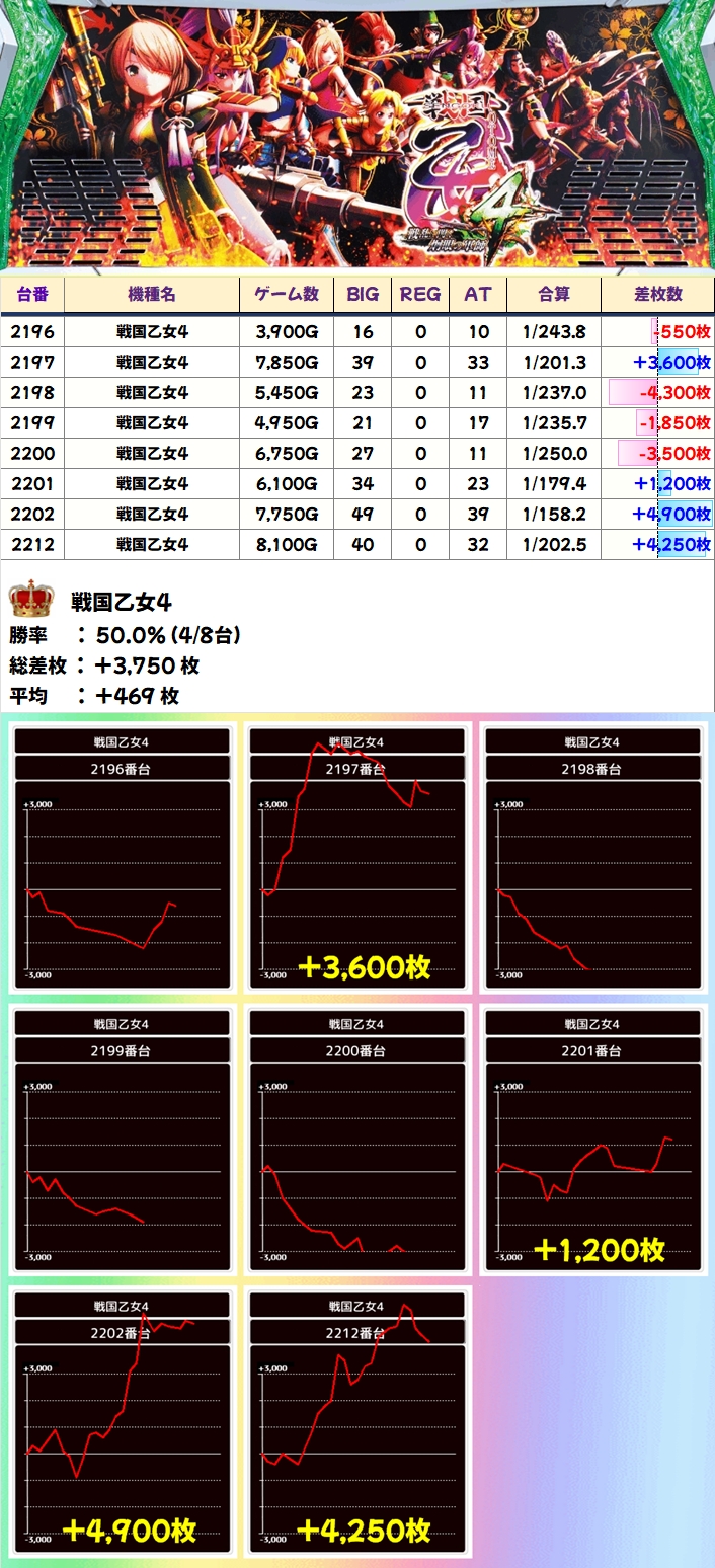 【1/2系濃厚】戦国乙女4(4/8台+)→平均+469枚