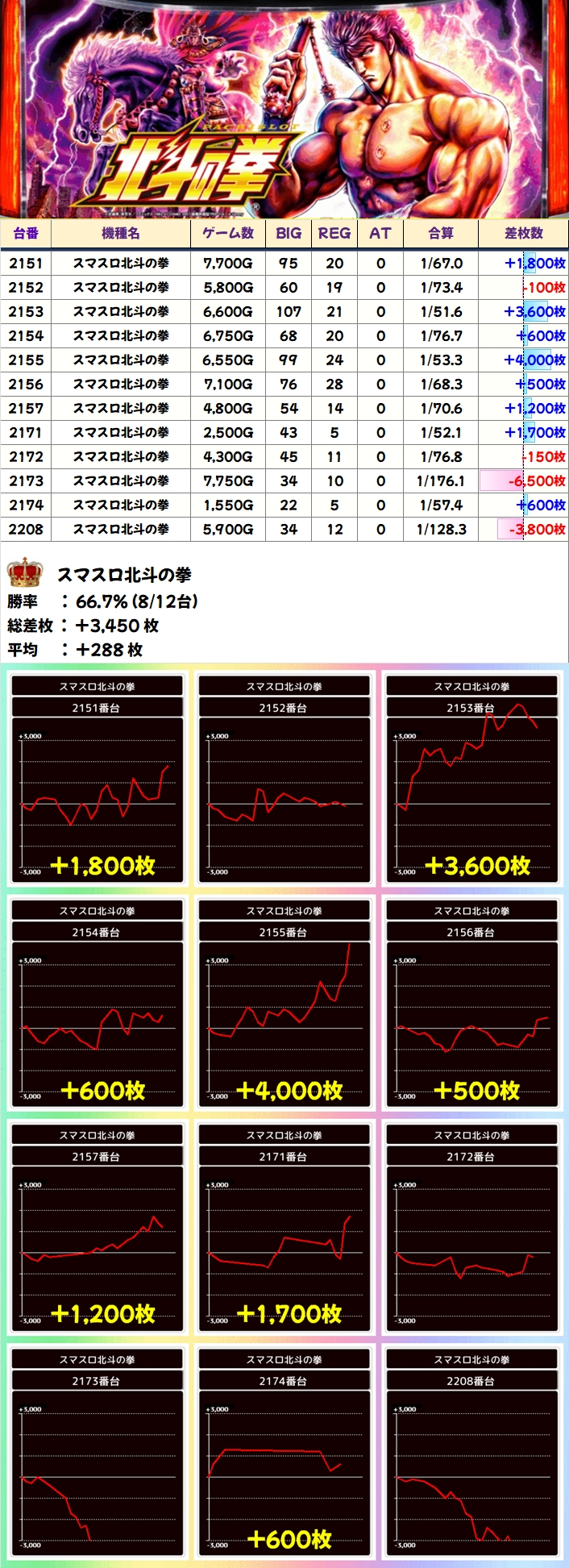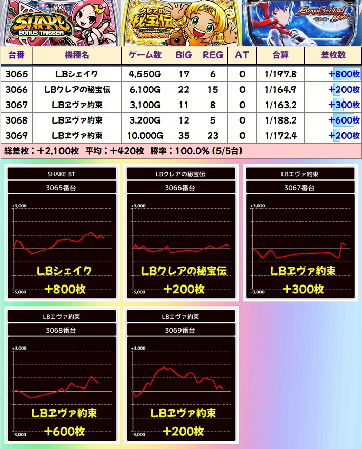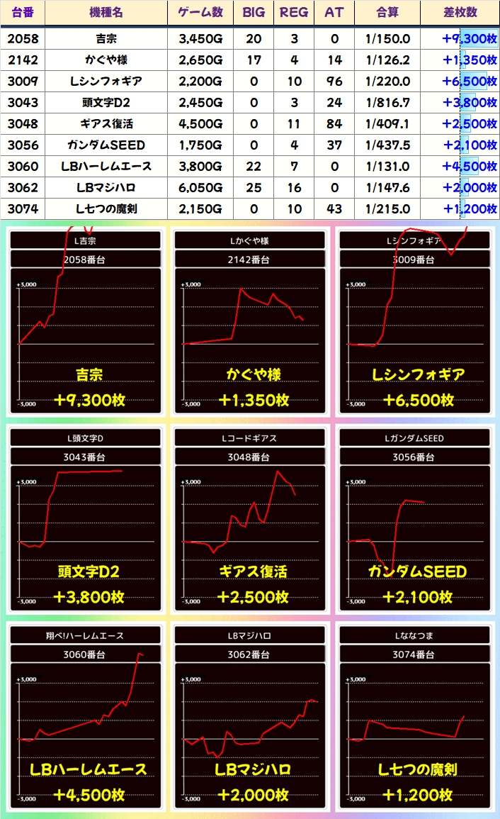 過去の傾向から考えると、今回も4台以上設置がある機種には機種イチ以上でお宝台が投入されていたのではないでしょうか?