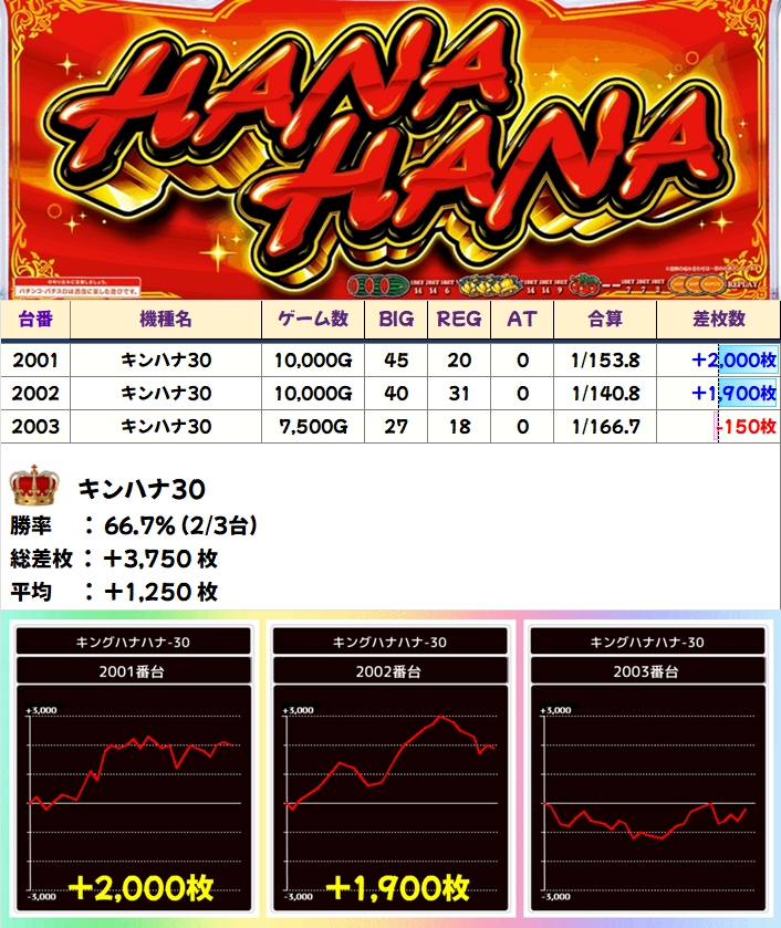 【全台系濃厚】キンハナ30(2/3台+)→平均+1,250枚