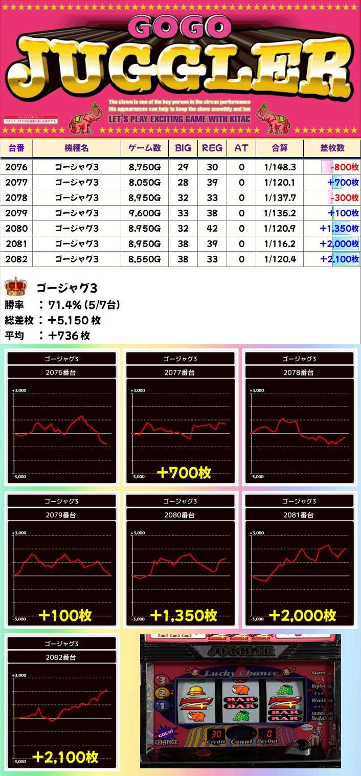 【全台系濃厚】ゴージャグ3(5/7台+)→平均+736枚