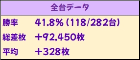 総差枚+9.2万枚、平均+328枚とド派手な出玉を記録!