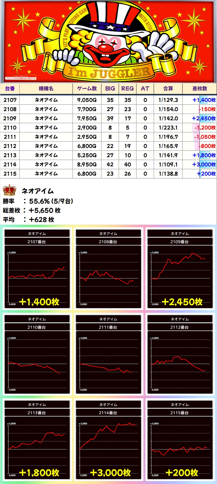 【1/2系濃厚】ネオアイム(5/9台+)→平均+628枚