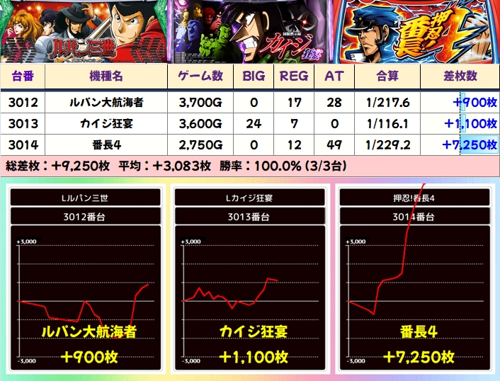 【3台並び】ルパン大航海者・カイジ狂宴・番長4(3012-3014番台)