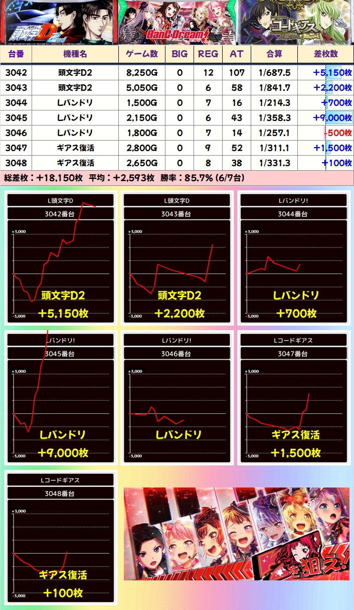【7台並び】頭文字D2・Lバンドリ・ギアス復活(3042-3048番台)