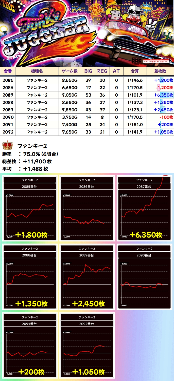 【全台系濃厚】ファンキー2(6/8台+)→平均+1,488枚