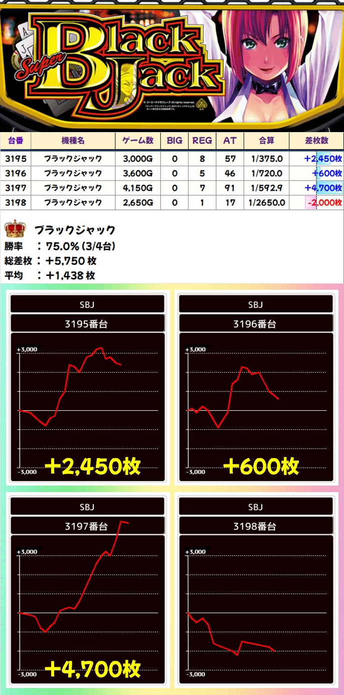 【全台系濃厚】ブラックジャック(3/4台+)→平均+1,438枚