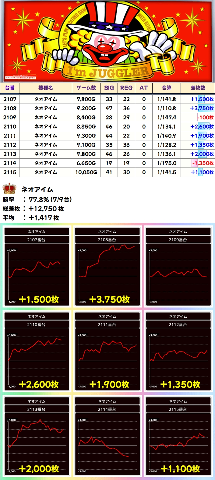 【全台系濃厚】ネオアイム(7/9台+)→平均+1,417枚