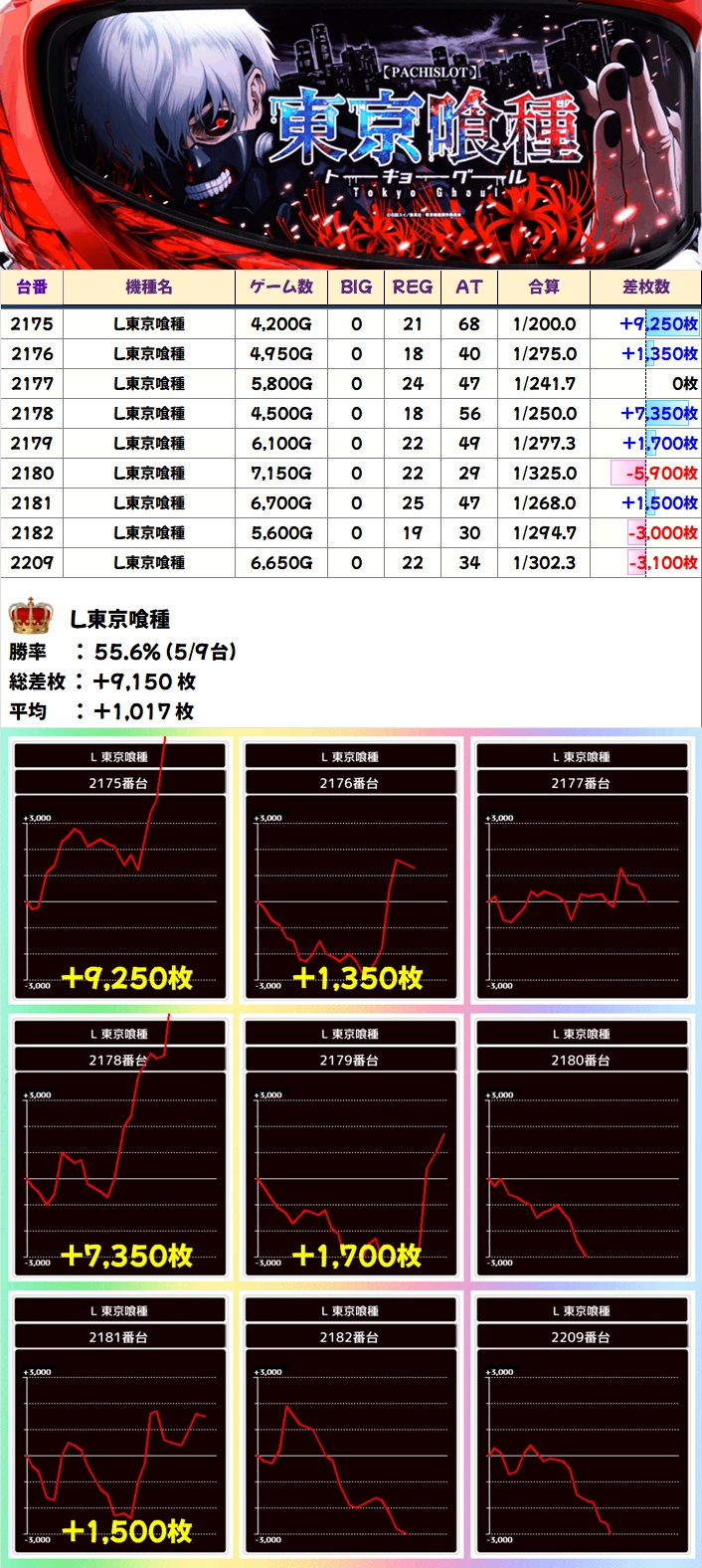 【全台系濃厚】L東京喰種(5/9台+)→平均+1,017枚