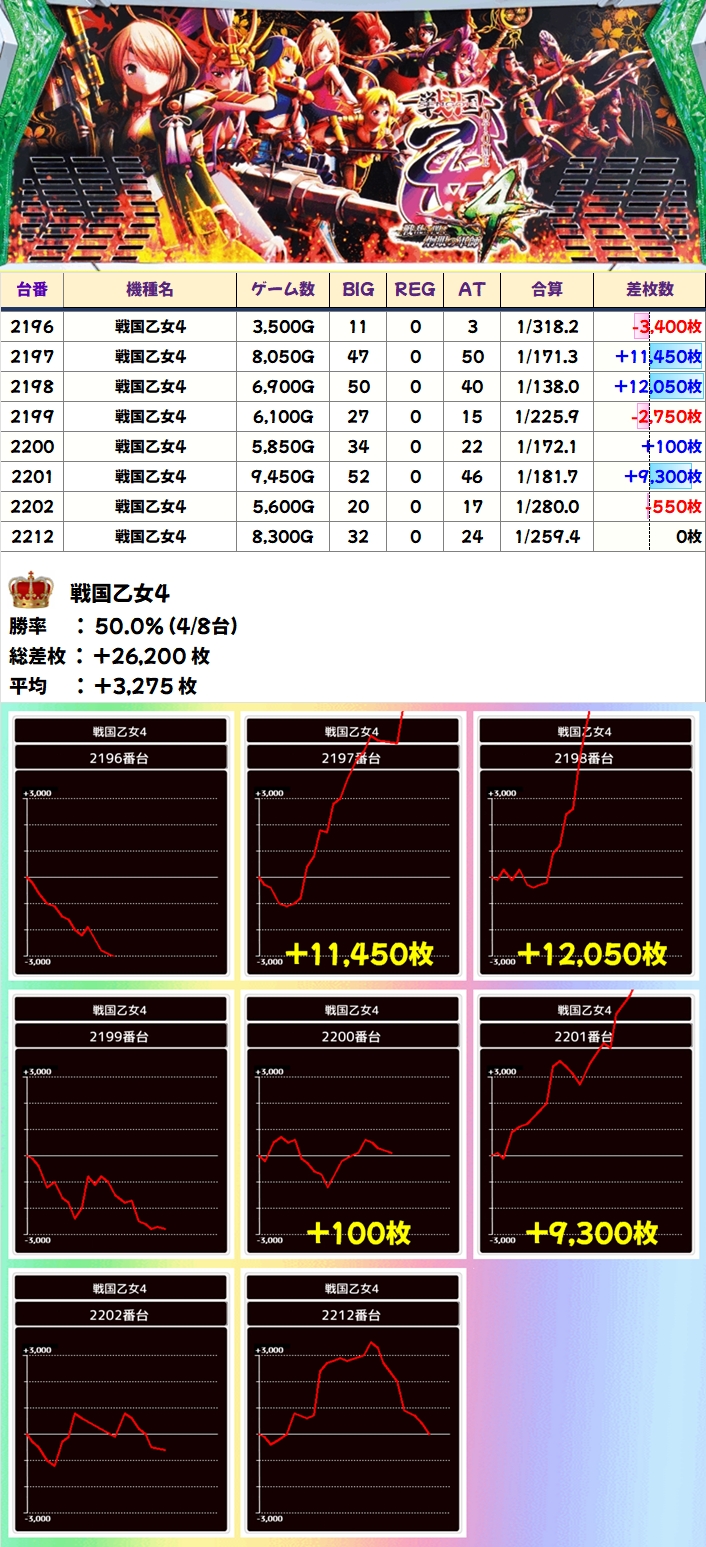 【1/2系濃厚】戦国乙女4(4/8台+)→平均+3,275枚
