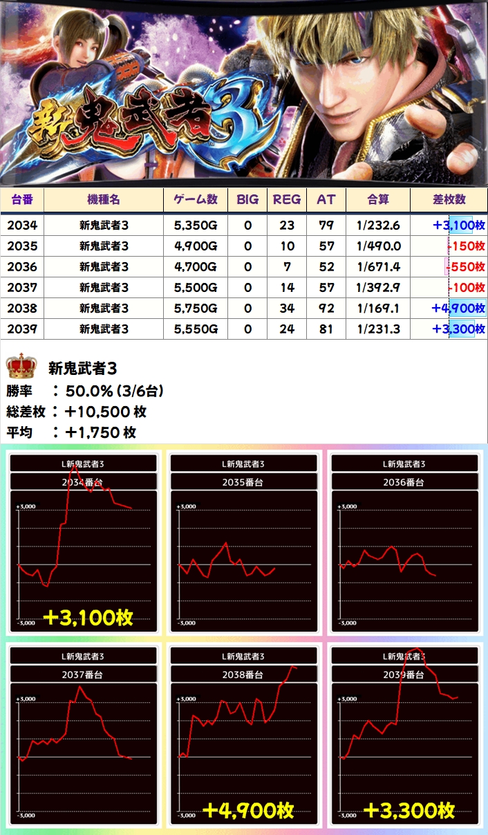 【1/2系濃厚】新鬼武者3(3/6台+)→平均+1,750枚