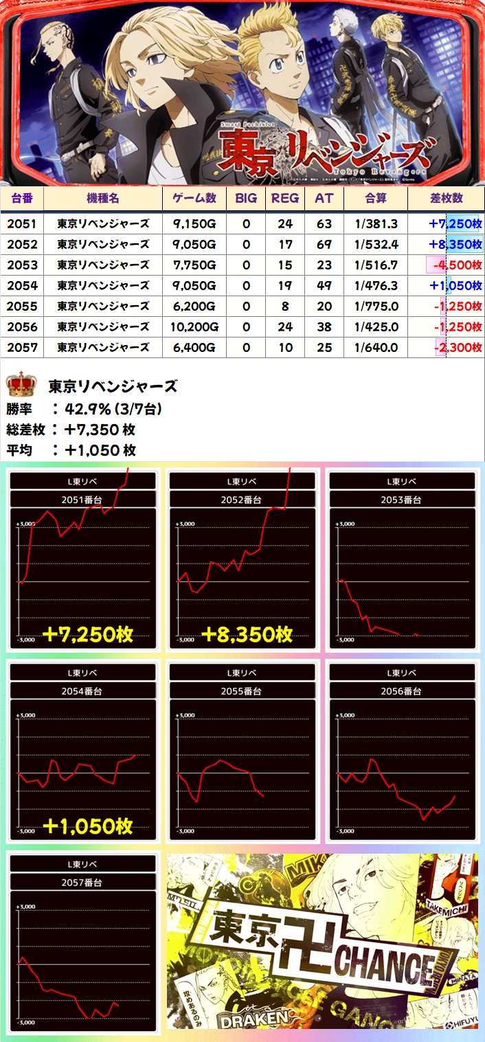 【1/2系濃厚】東京リベンジャーズ(3/7台+)→平均+1,050枚
