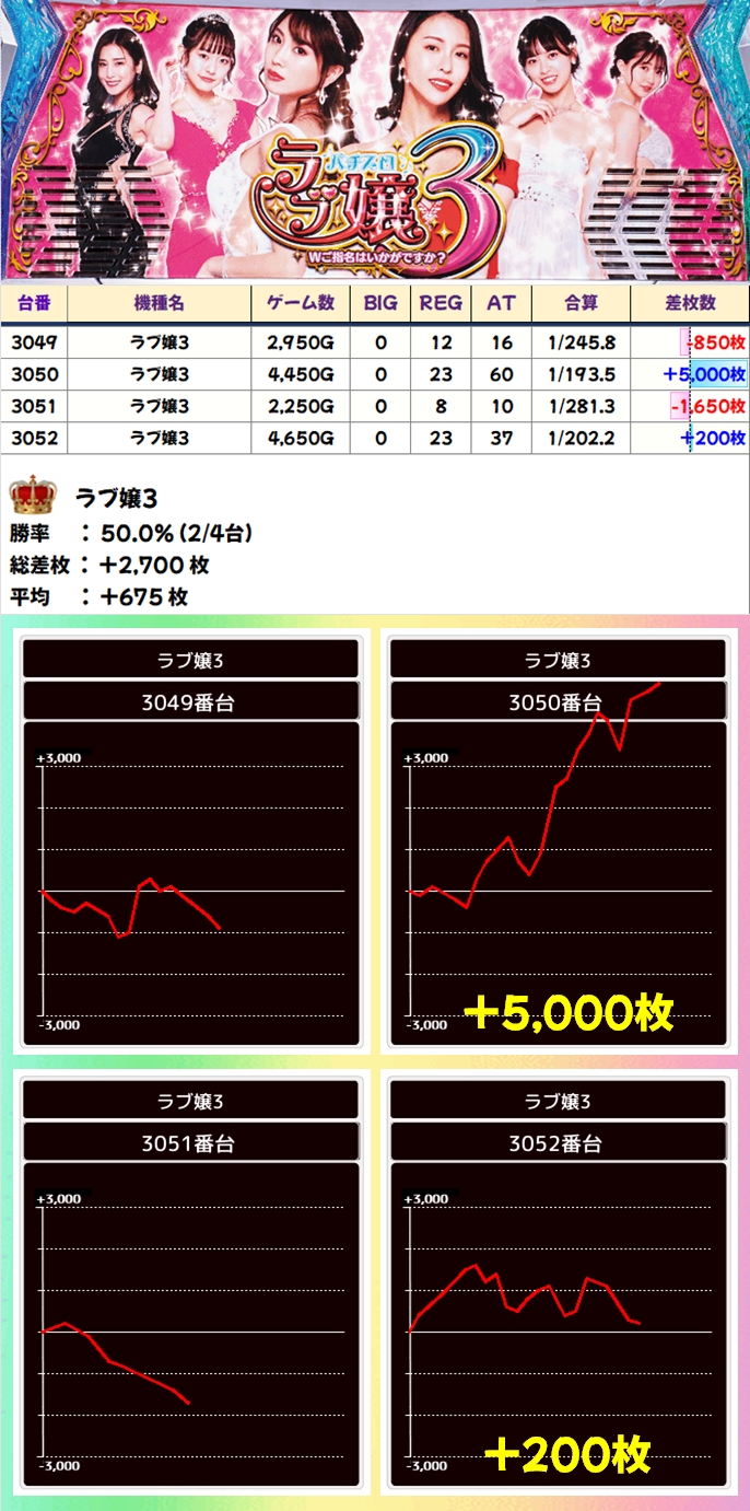 【1/2系濃厚】ラブ嬢3(2/4台+)→平均+675枚