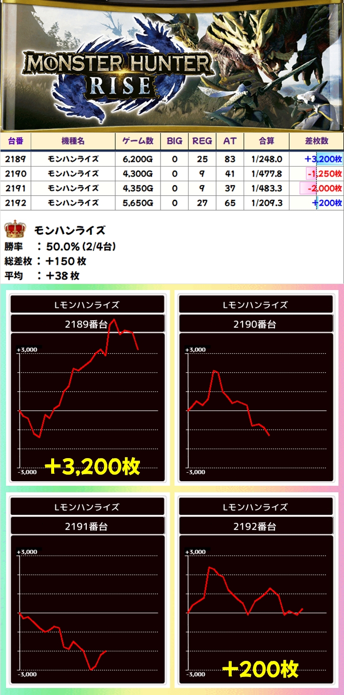 【1/2系濃厚】モンハンライズ(2/4台+)→平均+88枚