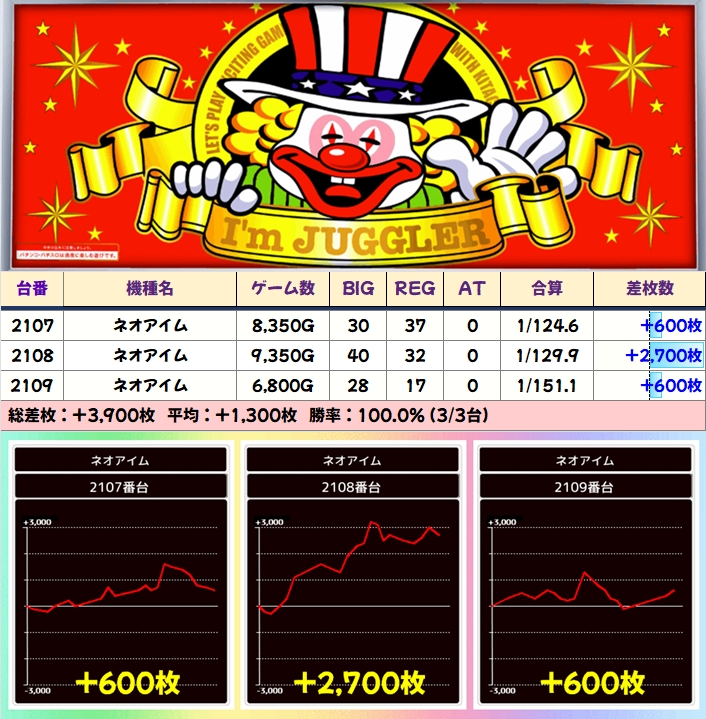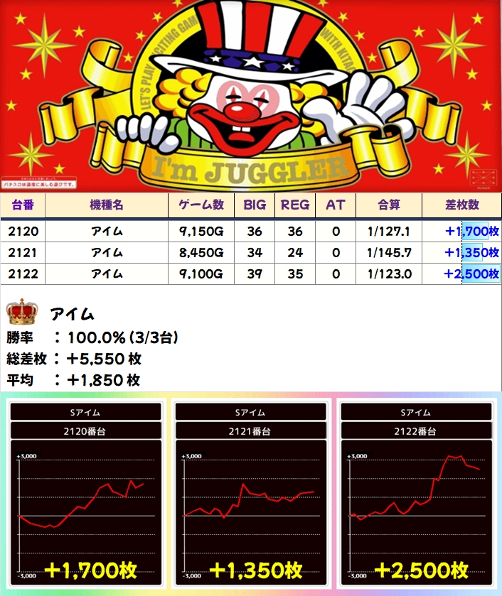 【全台系濃厚】アイム(3/3台+)→平均+1,850枚
