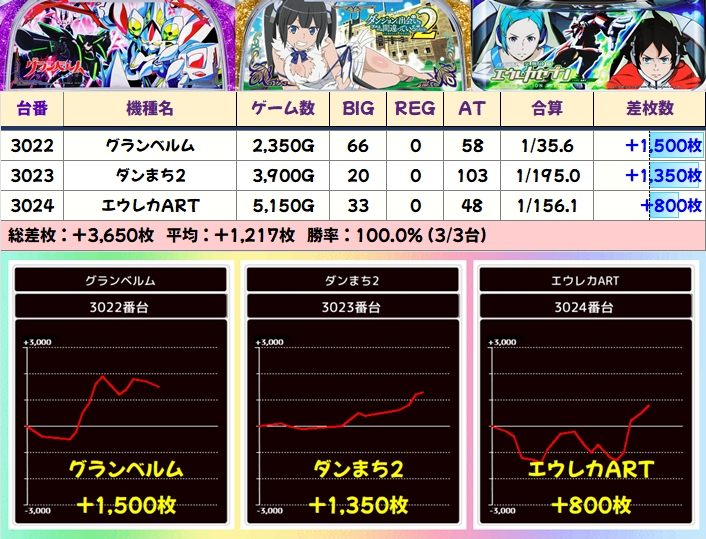 【3台並び】グランベルム・ダンまち2・エウレカART(3022-3024番台)