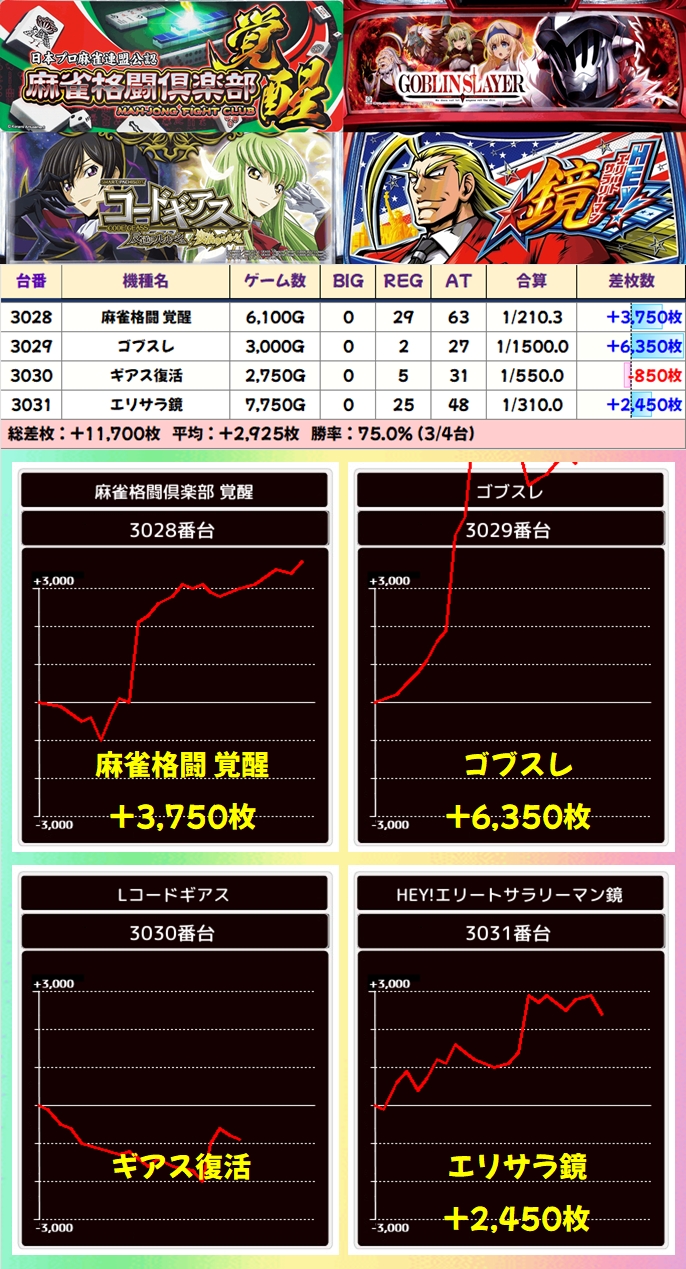 【4台並び】麻雀格闘覚醒・ゴブスレ・ギアス復活・エリサラ鏡(3028-3031番台)