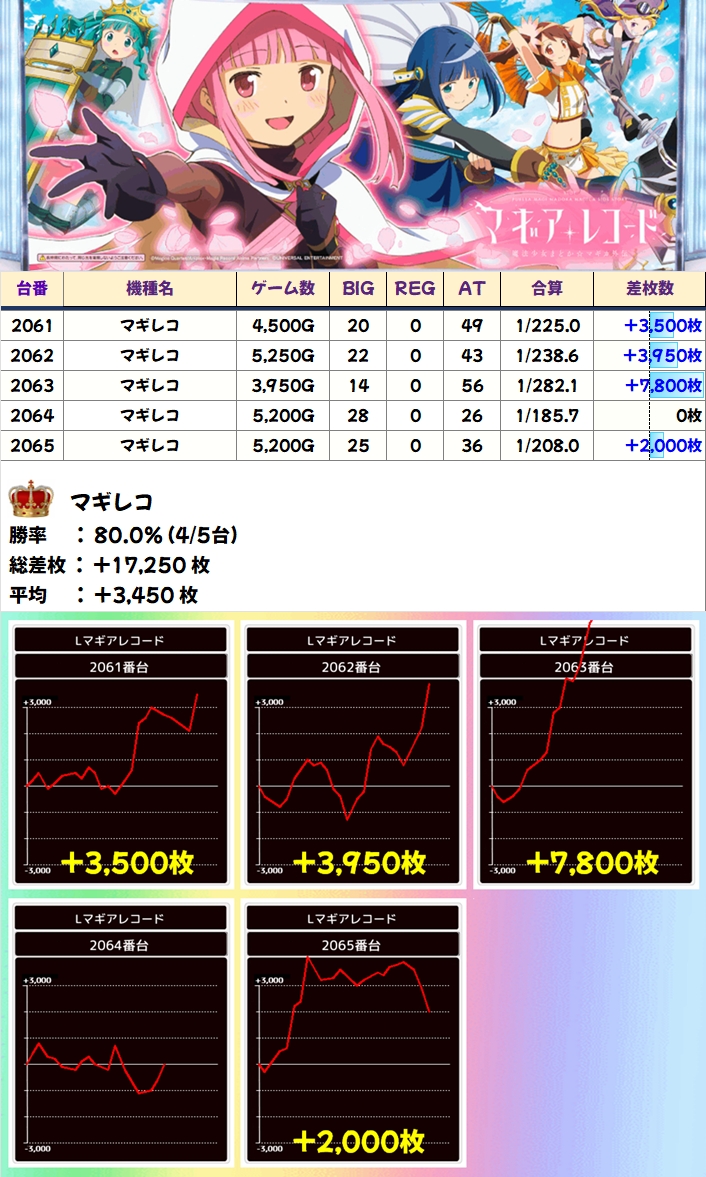 【全台系濃厚】マギレコ(4/5台+)→平均+3,450枚