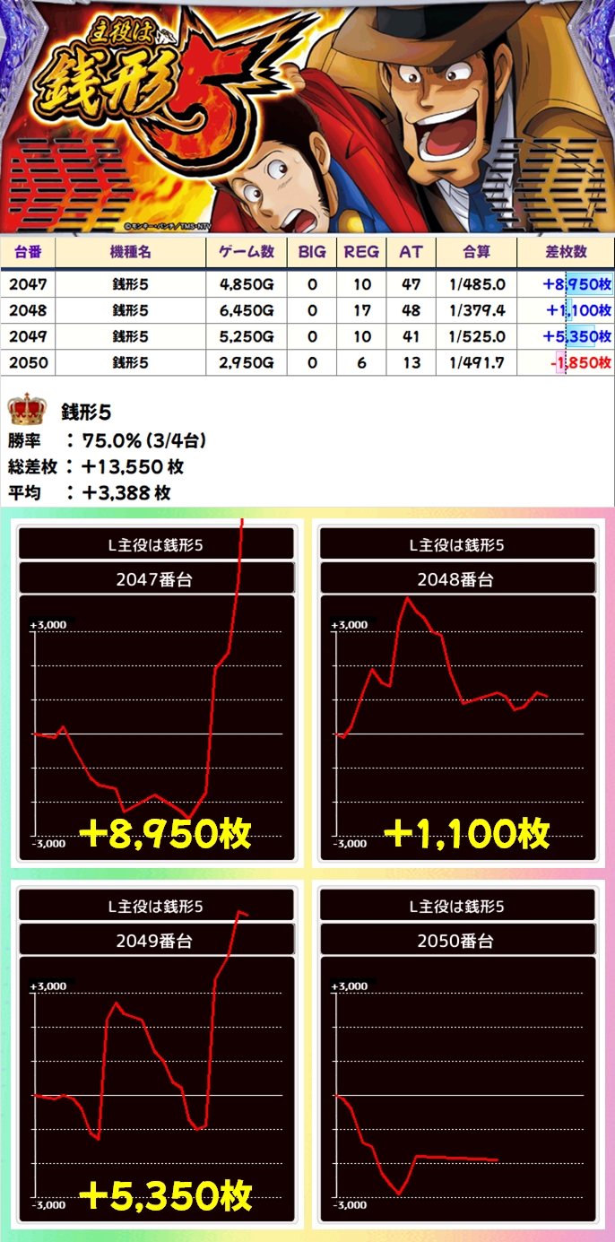 【全台系濃厚】銭形5(3/4台+)→平均+3,388枚
