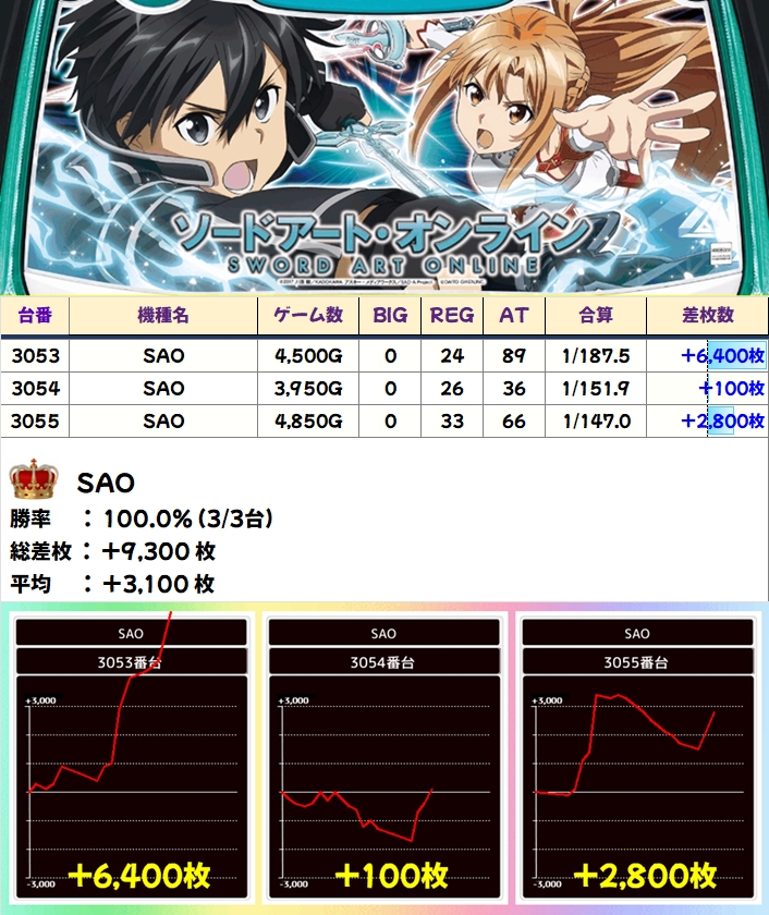 【全台系濃厚】SAO(3/3台+)→平均+3,100枚