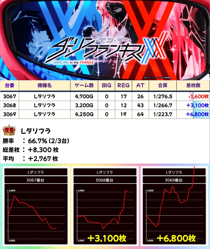 【全台系濃厚】Lダリフラ(2/3台+)→平均+2,767枚