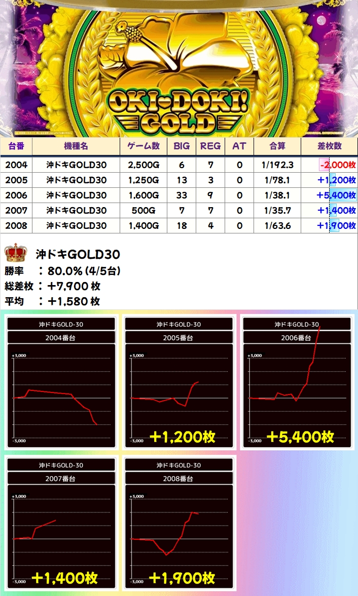 【全台系濃厚】沖ドキGOLD30(4/5台+)→平均+1,580枚