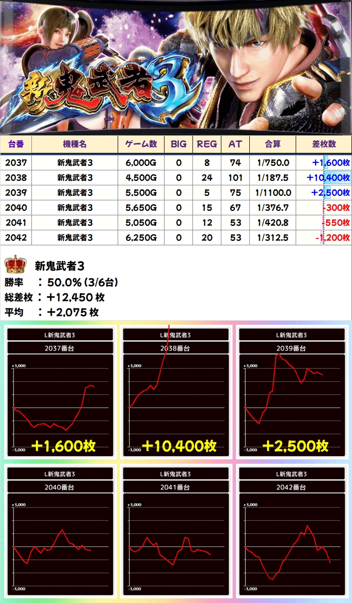 【1/2系濃厚】新鬼武者3(3/6台+)→平均+2,075枚