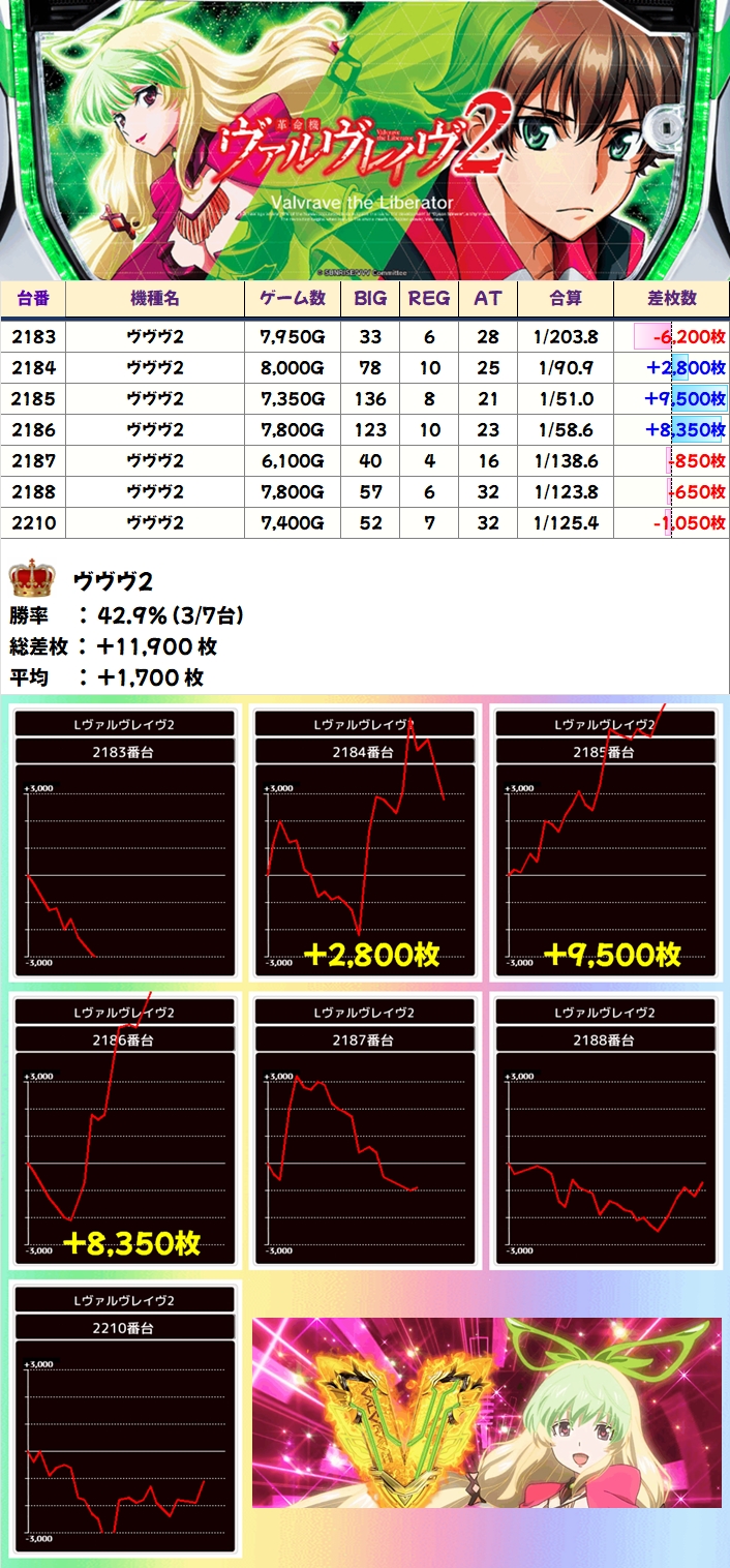 【1/2系濃厚】ヴヴヴ2(3/7台+)→平均+1,700枚