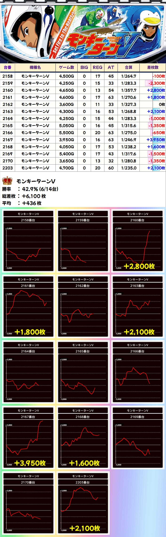 【1/2系濃厚】モンキーターンV(6/14台+)→平均+436枚