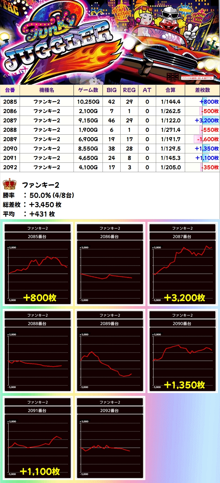【1/2系濃厚】ファンキー2(4/8台+)→平均+431枚