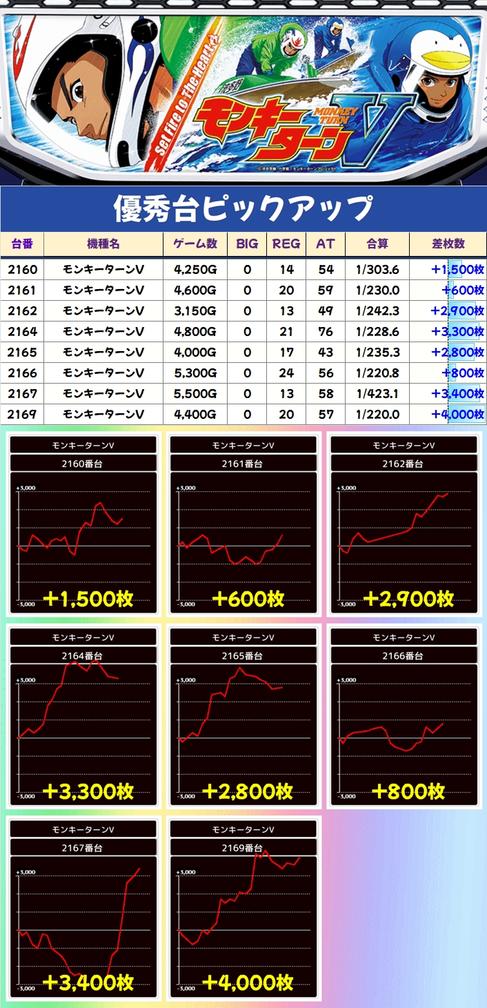 今回は全台系の他にも高配分機種を用意していたようで、主力機種のモンキーターンVが1/2系濃厚に!