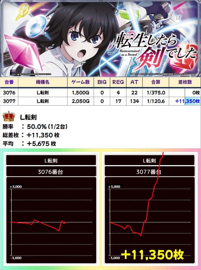 【1/2系濃厚】L転剣(1/2台+)→平均+5,675枚