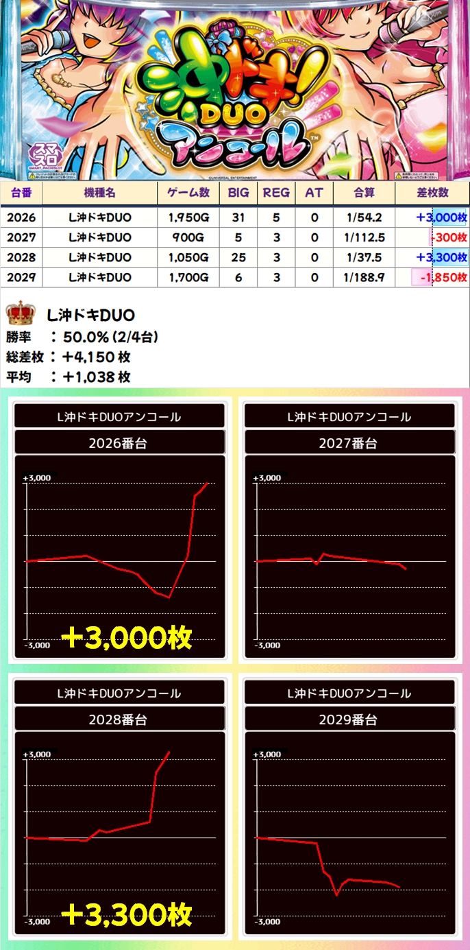 【1/2系濃厚】L沖ドキDUO(2/4台+)→平均+1,038枚