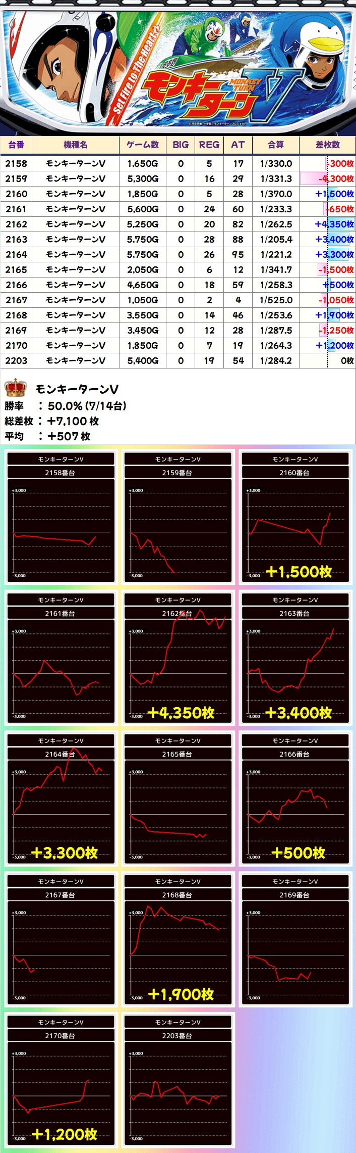 【1/2系濃厚】モンキーターンV(7/14台+)→平均+507枚