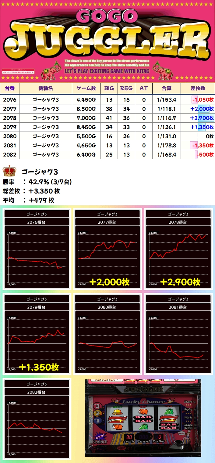 【1/2系濃厚】ゴージャグ3(3/7台+)→平均+479枚