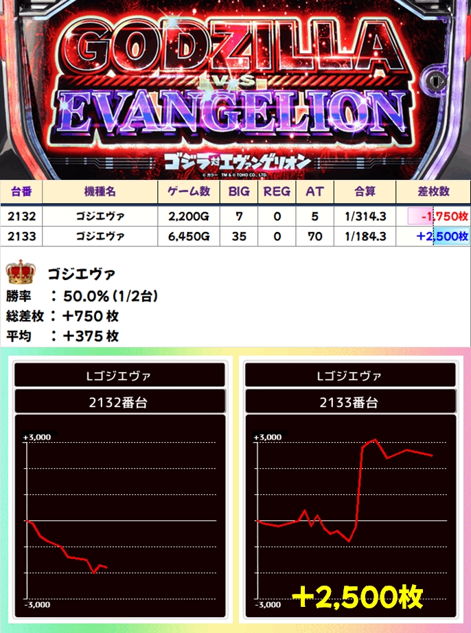 【1/2系濃厚】ゴジエヴァ(1/2台+)→平均+375枚