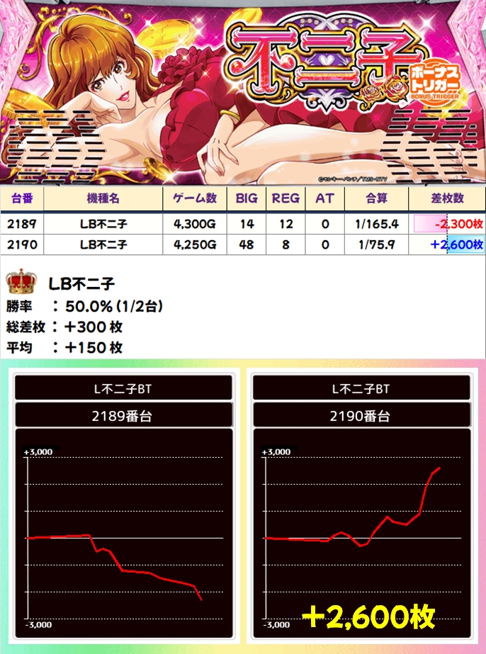 【1/2系濃厚】LB不二子(1/2台+)→平均+150枚