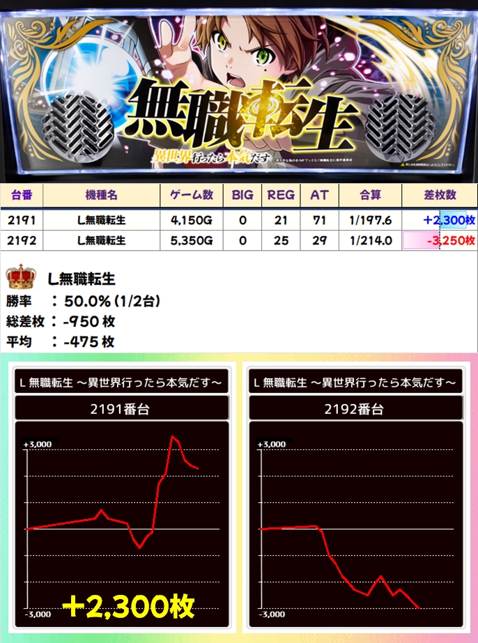 また、少台数機種にも仕掛けを確認でき、2台機種の機種イチ投入=1/2系の仕掛けも確認することができましたよ!