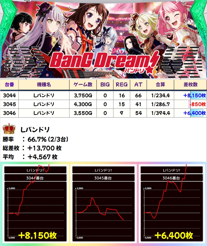 【全台系濃厚】Lバンドリ(2/3台+)→平均+4,567枚