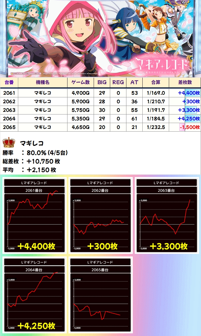 【全台系濃厚】マギレコ(4/5台+)→平均+2,150枚