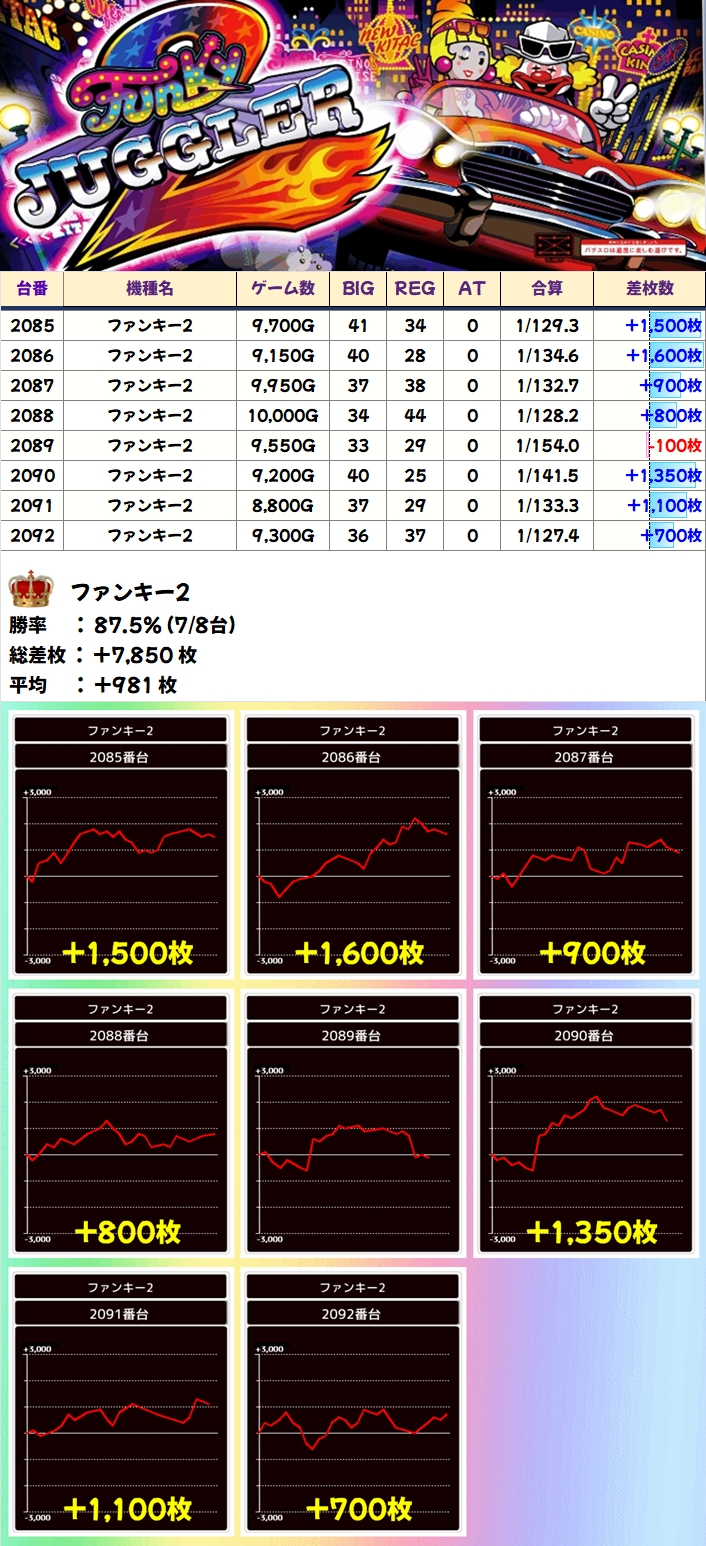 【全台系濃厚】ファンキー2(7/8台+)→平均+981枚