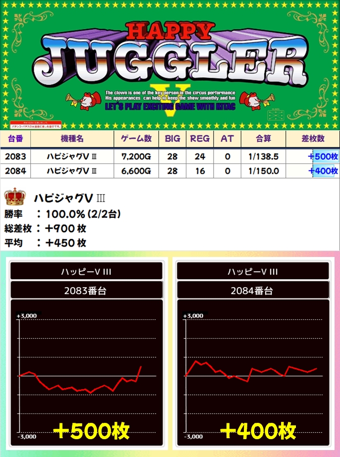 【全台系濃厚】ハピジャグV Ⅲ(2/2台+)→平均+450枚