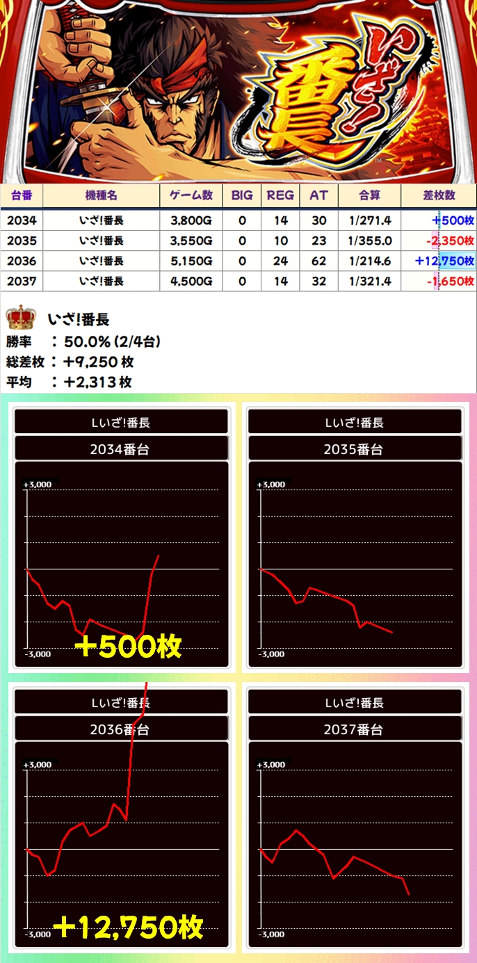 【1/2系濃厚】いざ!番長(2/4台+)→平均+2,313枚