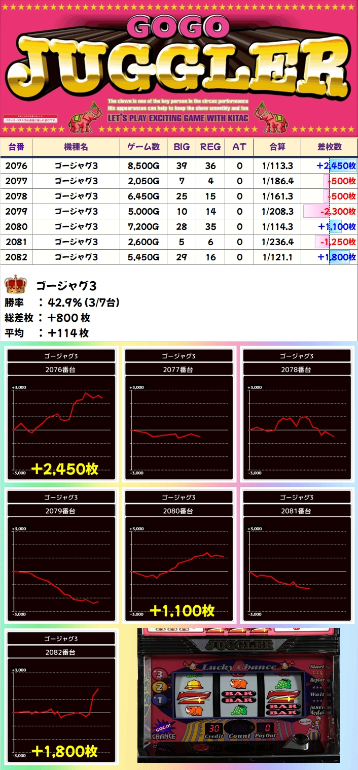 【1/2系濃厚】ゴージャグ3(3/7台+)→平均+114枚
