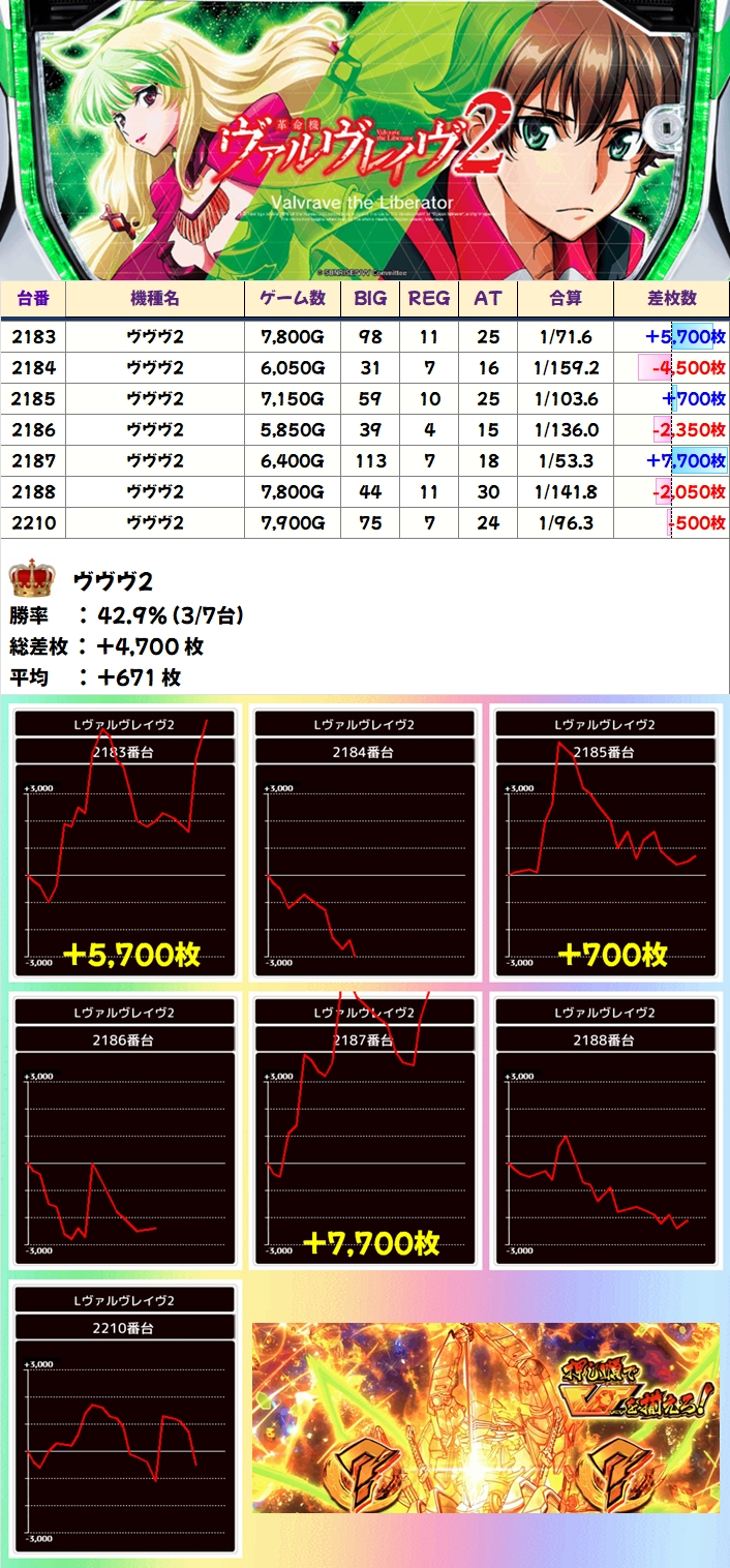 【1/2系濃厚】ヴヴヴ2(3/7台+)→平均+671枚