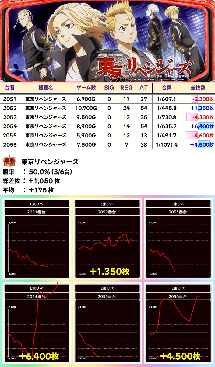 【1/2系濃厚】東京リベンジャーズ(3/6台+)→平均+175枚