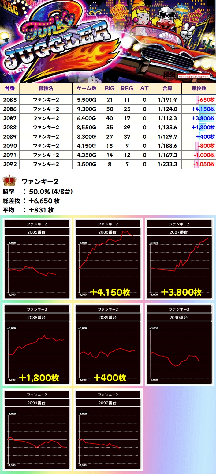 【1/2系濃厚】ファンキー2(4/8台+)→平均+831枚